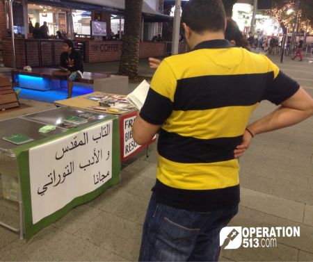 It is the time of year when thousands of people from the Middle East travel to the Gold Coast for a holiday. That is why last night for the first time, alongside our normal free Bibles table, we also set up a table for giving out Bibles in Arabic. It was great to see many Muslims coming up and taking a Bible in their own language.