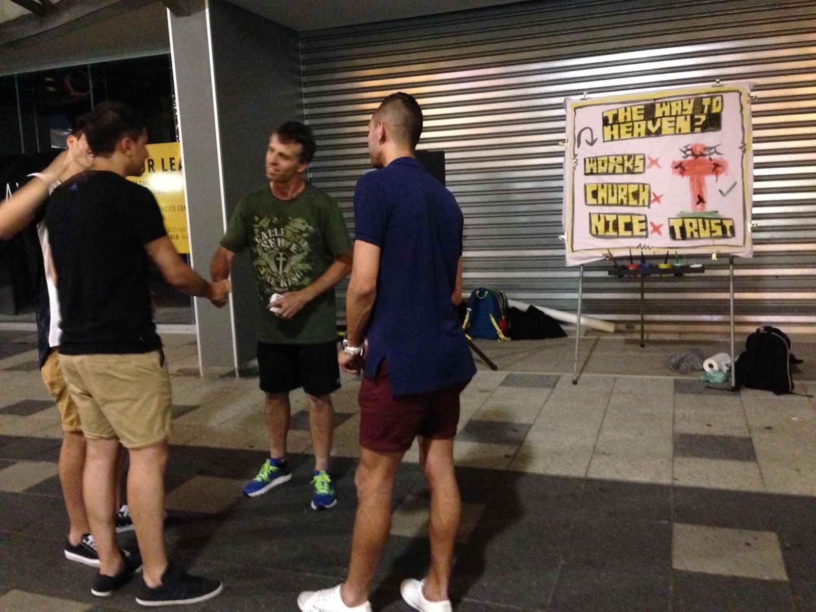 We left the sketchboard up with the message on it for the rest of the night so that people walking past could read it. The team had a few good conversations with people, proclaiming Christ and Him crucified.