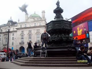 Later in the afternoon we were joined by Carl, who is a preacher with Operation 513 - London, he took us down to Piccadilly Circus to do preaching. It was quite a good place to preach, we set up under the Eros statue. First to preach was Carl, he did quite a good job of making the gospel of Christ known. He presented to all those who would listen why they needed a Saviour, then he showed them that Christ was that Saviour.