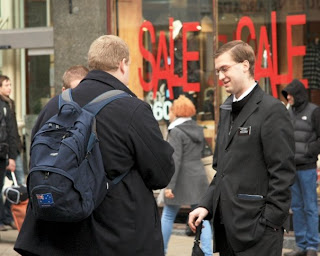 We had three people I had never met before join Juan and I out on the streets witnessing today in Brisbane City. Many conversations were held with the people in Queen St, with one of the conversations we had being with a group of teenagers who seemed very immature. One of the most vocal of the group was an atheist, but wasn't really interested in hearing evidence for God and so got the group to go to another place. However, later on the group seemed to have grown in size and they came back up to us wanting to know more about Christianity. So Juan and I shared the gospel with them and answered any questions they brought up.